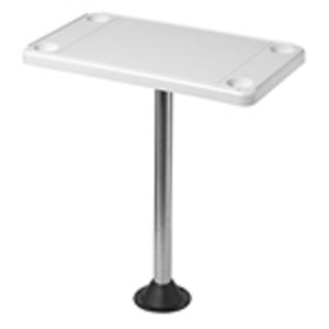 • Ensemble de table. Rectangulaire 16" par 28" en plastique couleur ivoire, avec base de plancher. Poteau en acier inoxydable. Hauteur de la table une fois installée : 26".
