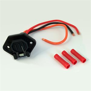 • 12 volts, prise de raccordement femelle pour moteur à la traîne ,fil de 6" de long avec raccordement tubulaire, conception de caoutchouc noir moulé offre une construction étanche à l'humidité. …