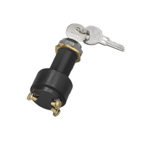 • commutateur à trois positions: fermé / allumage / démarrage (pousser pour "choke"). . six bornes à vis. 12v dc, testé à 10a . bouchon étanche. comprend 2 clés.